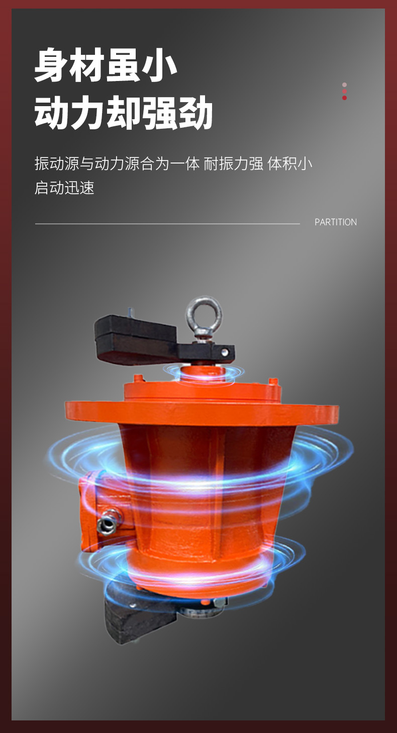 (1)本產(chǎn)品由特殊設(shè)計(jì)的電機(jī)外加偏心塊組成,當(dāng)電機(jī)旋轉(zhuǎn)時(shí),偏心塊產(chǎn)生激振力通過(guò)電機(jī)傳遞給振動(dòng)機(jī)械。